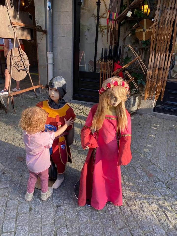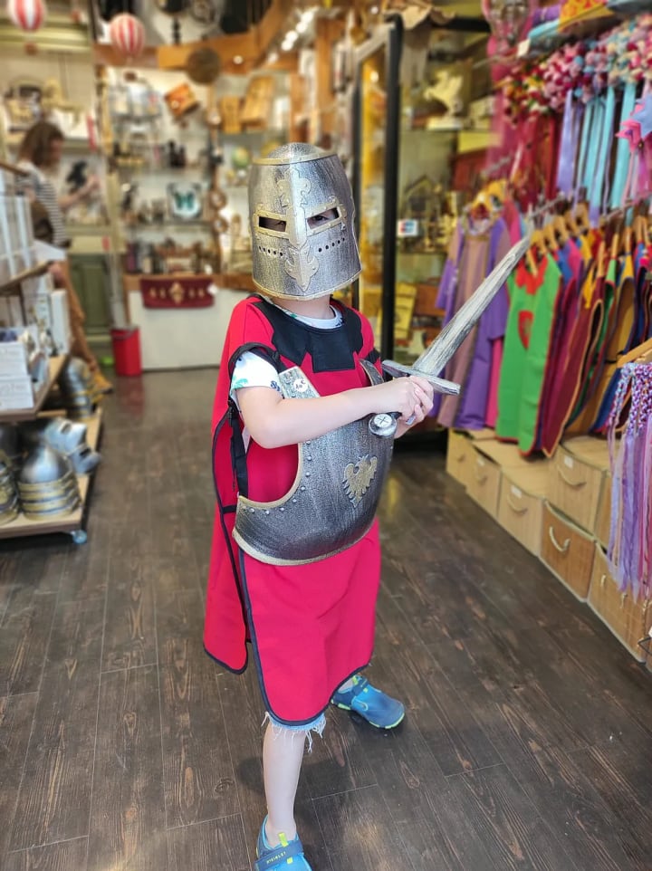 They were wishing for a full costume, but they already had gotten a set of swords and shields during an earlier trip to Taródi Castle in Hungary.