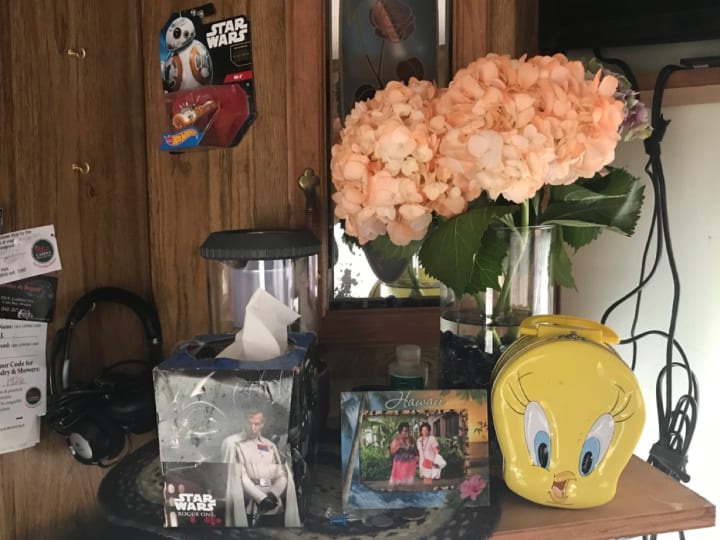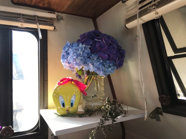 Space is limited in a 26 foot travel trailer, so fill it with beautiful flowers.