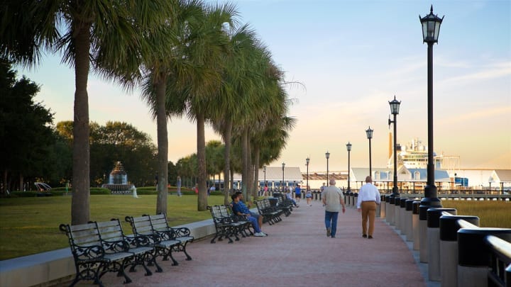 The Battery and White Point Garden is the promenade along the seawall by the Ashley and Cooper Rivers where they meet and form the Charleston Harbor became a public garden in 1837. Visitors can see historic mortars and cannons and a Confederate monument. From the gardens, you can have great views of Fort Sumter and Charleston Harbor.