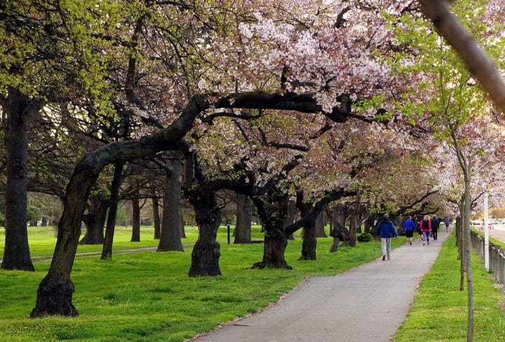 It is a fantastic place to stroll in any season but in the spring you can delight in the blooming cherry trees that line Harper Avenue. Joggers love the tree-lined avenues in any season.