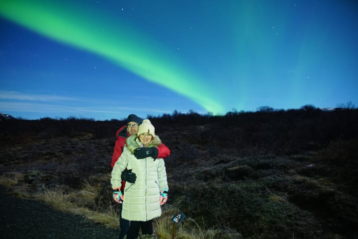 The chance to see Aurora Borealis, or the Northern Lights, was the catalyst behind this Christmas escape across the sea. Pictures of swirling colors dancing with twinkling stars across the nighttime sky have filled my head for years. And, luckily, the astronomical wonder did make a few appearances during my visit. They are difficult to see in Reykjavik due to light pollution, but I did witness faint lights from our marina hotel balcony one night. The best display was seen on a countryside tour, where we waited two hours for this amazing natural phenomenon. The lights appeared as a pale ribbon in the sky, becoming gradually brighter.