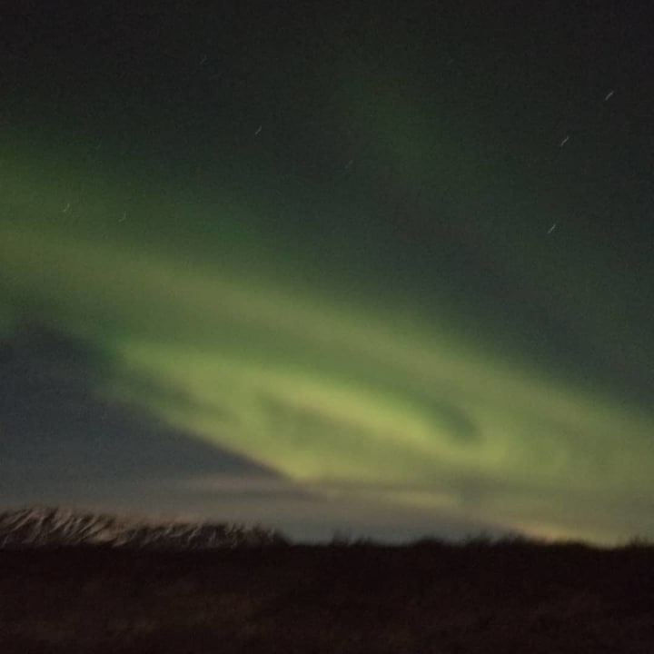 I learned how the colors and patterns stem from ions or atoms being energized as they collide with the atmosphere and are affected by magnetic force. The hues can range from reds, violets, and greens, however only the greens were visible to me. The moon was super round, big, and bright which, although beautiful, weakened the force of the Northern Lights.