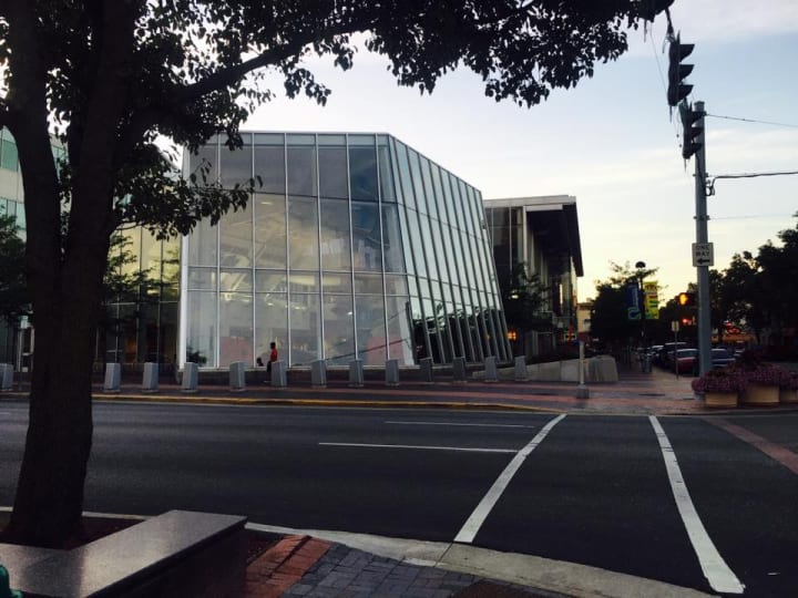 This glass encased space is called "The Commons". If you have little ones that need to burn off some energy, this is the perfect place! It's on the other side of the court house.