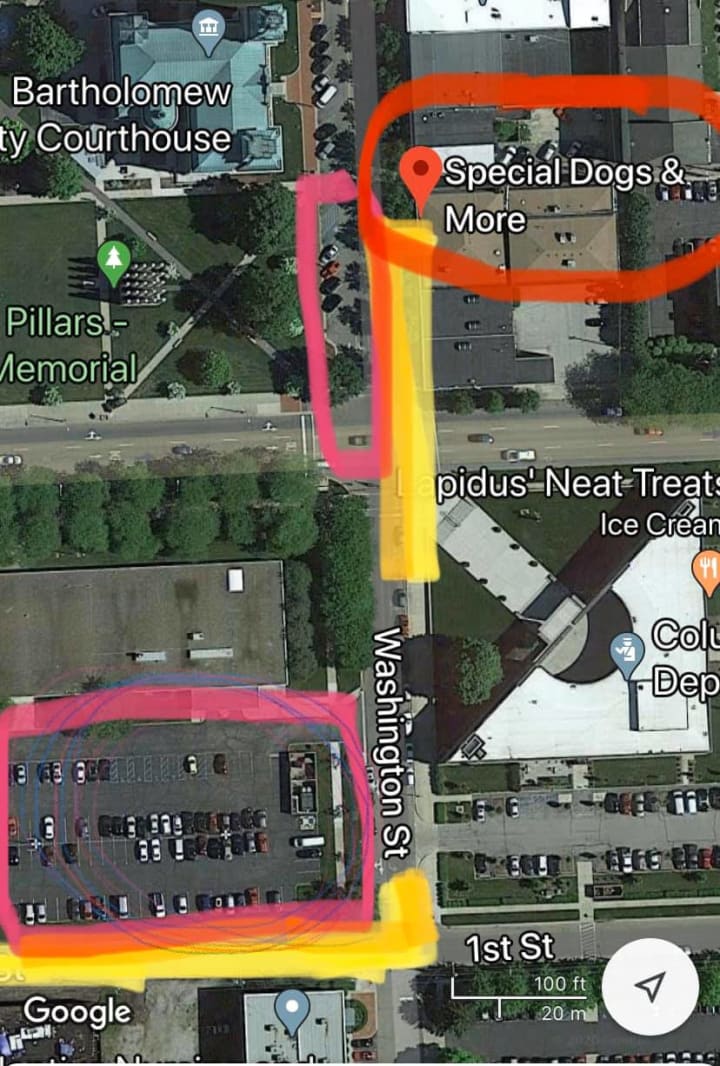 Once you exit the freeway, you will drive toward Downtown Columbus.
