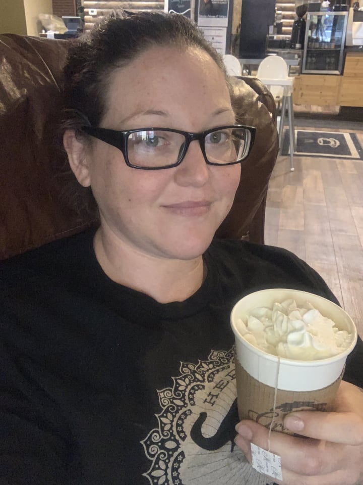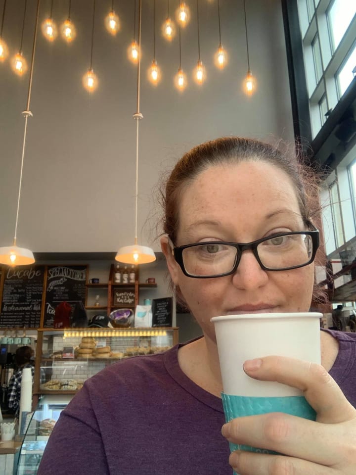 A warm cinnamon scone and chai tea latte. Soooooo good!!! Worth getting up and out on a Saturday morning.