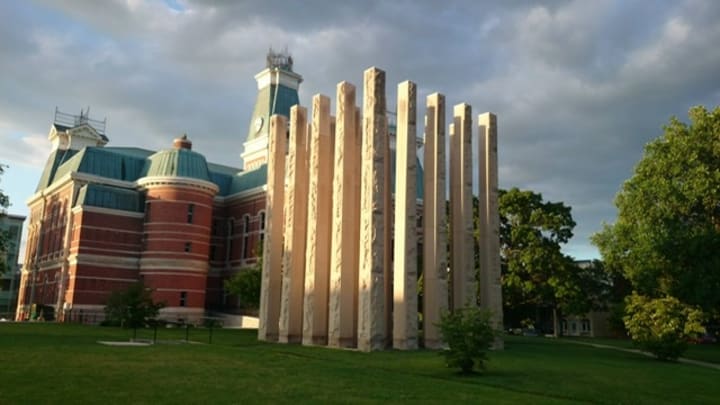 You'll find this tucked away near "Friendship Ally". Students from Ivy Tech in Columbus collaborated to come up with designs for this wall. Weeks were spent studying the history of the town's famous architecture so that this mural would embody it. Just a 15 minute walk from the mural is a great park.