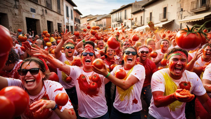 Every year in Buñol, Spain, there is a tomato fight known as La Tomatina. A food brawl between friends in 1945 gave rise to this unusual celebration.