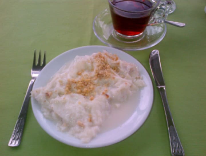In Ottoman records, milk skin appeared during the reign of Sultan II Murad in the 14th century. Legend has it that there was a snack influenced by Chinese food culture, but there is no certainty as to how it was made. In the 15th century, people widely spread it. Over time, milk skin changed from milk skin to rose milk skin added to rose water. Rose milk skin was called "güllüa"ş. It was only later that "food with roses" was renamed "güllaç". This snack is very popular in Sudan and will be used to entertain guests at some celebrations.