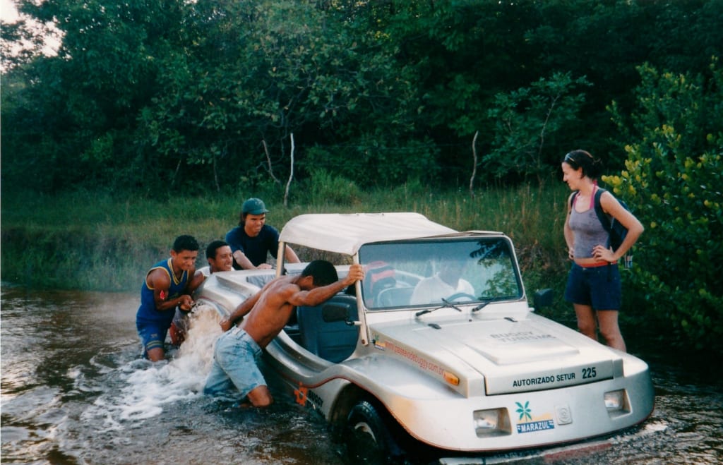 But that wasn't to be the last of it! Now in the river, we had to get back out! That entailed driving through the water for about 300 m and out the other side! Unfortunately, wet sand is quick sand and we quickly sank! All of our pushing and lifting wasn't doing a bit of good so with the water now up to the seats, our driver left to find some help while I recorded to event for prosperity...and giggled Finally, soaked from the spinning wheels, we made it out and headed DIRECTLY home!!