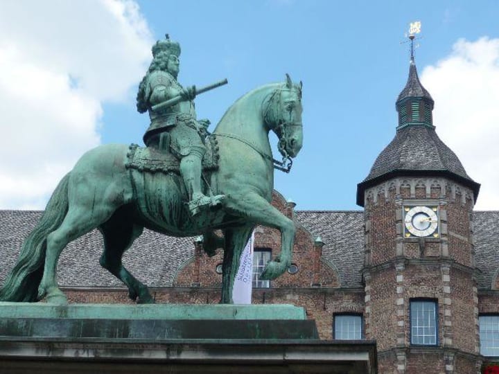 On the Marktplatz in front of the City Hall sits the amazing Elector Jan Wellem Equestrian Statue. It is the creation of Gabriel de Grupello and the base was designed by Adolf von Vagedes. The statue is made of bronze dating from 1711. It is considered to be one of the most beautiful equestrian statues north of the Alps.