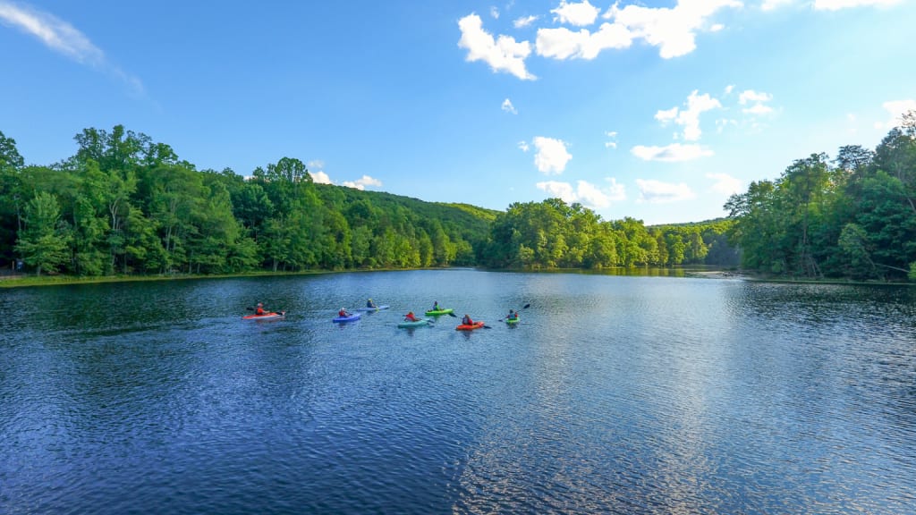 Bays Mountain Park and Planetarium in Kingsport is a large city-owned park. (Bay Mountian Park is pictured above) It consists of a nature preserve. There is a 44-acre lake, a Nature Center with a Planetarium, and exhibits displaying Animal Habitats. Bay Mountain also offers an Adventure Ropes Course with a 300-foot-long zip line. There are miles of hiking trails and you can enjoy mountain biking. The planetarium offers free seasonal astronomy viewings at night.