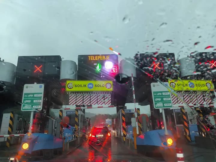 It was the first time we had rain during our trip. However, the motorway was very good and there was little traffic on the way. It was June, and not yet the holiday season in Europe.