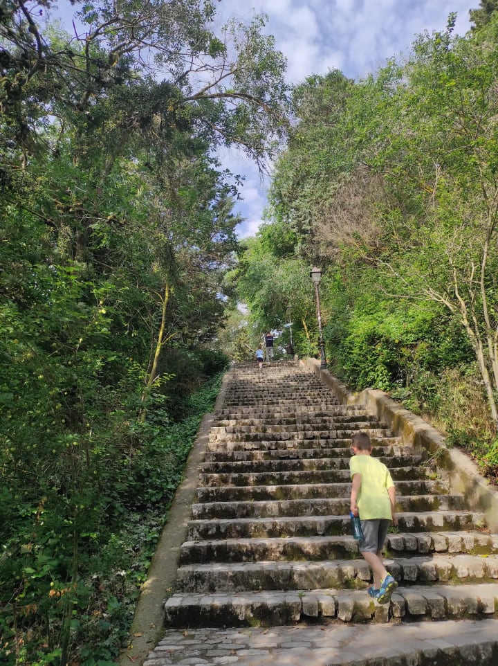 Here we were climbing the hill, and the kids were super happy because they love climbing stairs.