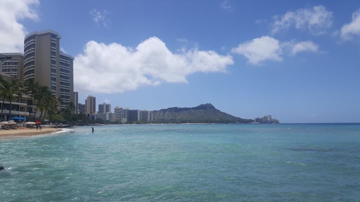 Waikiki beach can get a little crowded sometimes, but if you happen to go to Oahu make sure to go to Waikiki beach. This day was not as crowded as most days. The water was calm and it looked and felt like you were swimming in a swimming pool.