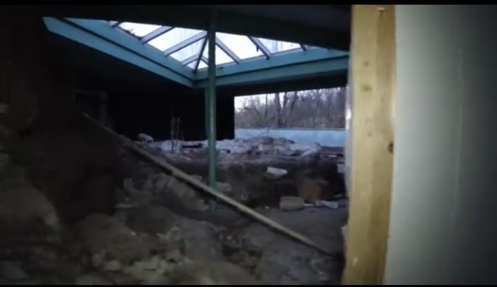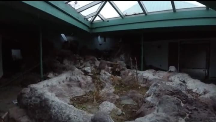 There she was, still standing - barely. She didn’t look grand anymore, only weathered and sad. I entered to find broken glass and a variety of empty cavernous tanks.