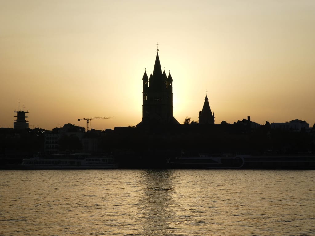- Cologne was a strange Germanic combination of the narrow old streets of Gràcia in Barcelona, and the openness of downtown Copenhagen... and I absolutely fell in love! For me, a city isn't my kind of place unless it leads to the ocean, and the River Rhine is best experienced after taking a walk across the well-photographed and of course padlock-riddled, Hohenzollern Bridge and sitting on the large stone steps watching the sun set behind the cathedral. We lost two hours just watching the world go by from this spot.