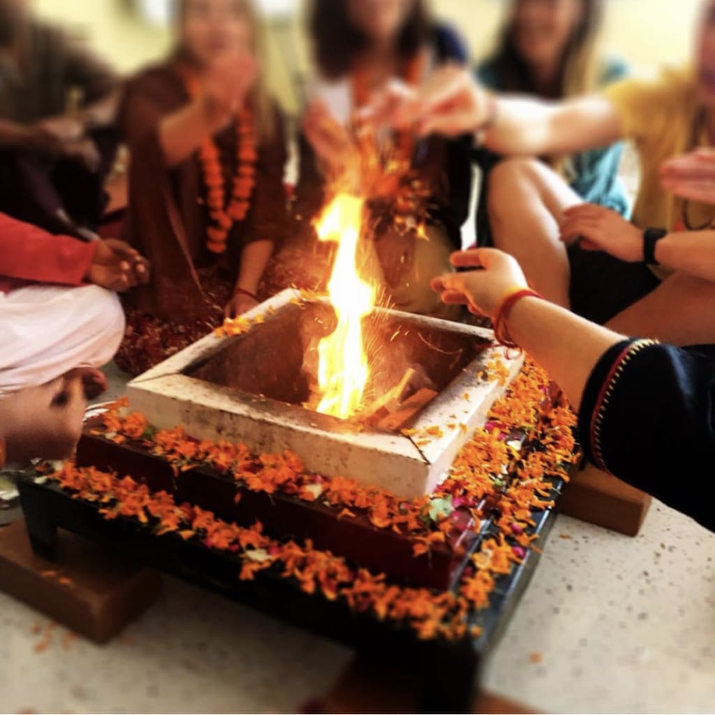 Or, the first day of yoga class – our 3 hour initiation ceremony around a blazing firepit. Us, chanting along with the gurus, throwing Indian spices and ghee into the fiery alter. (shrugs) Looking around the circle at the different faces – Brazil, Australia, Germany, San Francisco – all dewy with the mixture of humidity and anticipation. Me, dripping sweat, my first ceremonial bindhi pouring down my nose onto my white shirt, feeling exposed as an imposter.