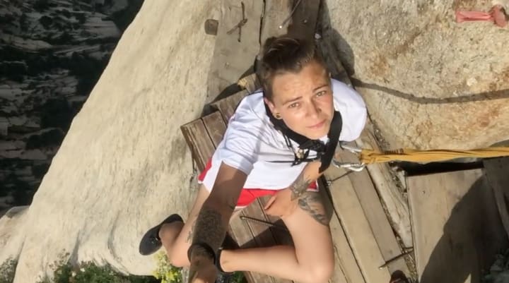 After a few hours trek, I got to the North Peak, as my first plan was only one day trek, I was almost about to take the cable car to descend and go back to Xi'an. Luckily, when I was "catching a breath," I saw there's a hotel. It kinda surprised me so, I googled some more info about the mountain and I found out about plank walk at South Peak. 'I HAVE TO DO IT,' I thought, and so a few seconds later I was trekking forward. It was really risky, as I didn't know if there will be any free spots at the hotel (despite the "World's dangerous trek," a lot of people is visiting the mountain).