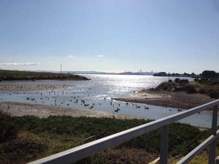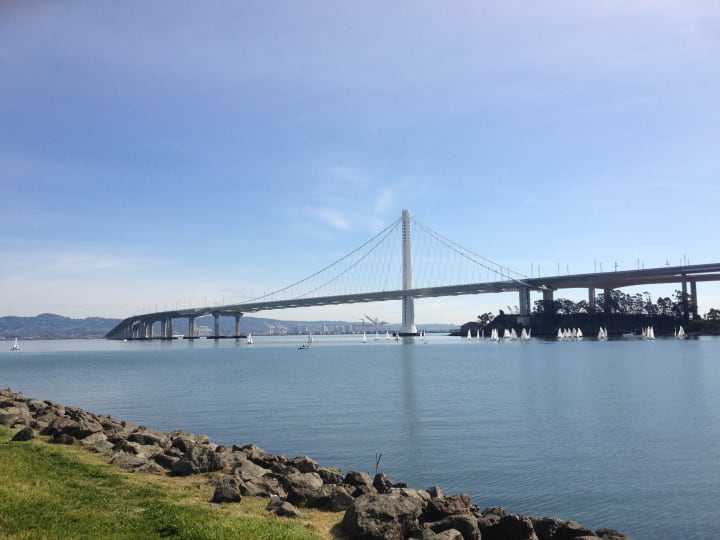 I took a bus out as close to Berkeley Marina I could get without changing to another bus. From the Berkeley Amtrak station, I walked around the aquatic park, crossed a bridge over the freeway, and followed the bay trail out to the marina. The views across the bay from the bridge, and all the way out to the marina, were amazing. You could clearly see San Francisco's skyline, the port of Oakland, Treasure Island, the bay bridge and the Golden Gate bridge.