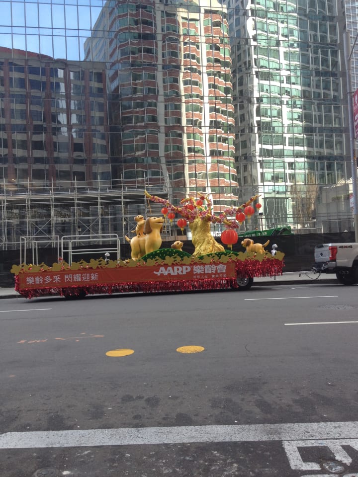 As her knee was still not recovered, my sister and I agreed to each make our own way to San Francisco and meet there. I walked down to Jack London Square, having finished reading Jack London's Call of the Wild not long before we left on our trip. The first sight of the square was the palm trees, then the mural on Heinold's First and Last Chance Saloon, Jack London's cabin, the dog statue, and the fountain.