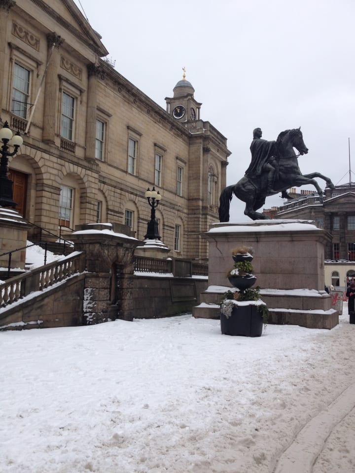 The atmosphere on the coach was tense, people craning their necks to see the road, as we wound past snow drifts over roads covered in snow. At one point, the coach struggled to pass some cars, and almost stopped. When we got going again, the passengers applauded. Further up the A698, winding along just below the border, we had to stop. The council was there, clearing a blockage. But we made it through, and from then back to Edinburgh it was clear running. Finally making it into the bus station around noon, 13 hours after we'd left London the night before. Those extra 5 hours in the borders hadn't been ideal, but at least by the time we made it in the buses were running again. The city centre, normally unlikely to even get snow lying, still had a decent chunk of snow. When we went to bed that afternoon, we'd been awake for 48 hours.