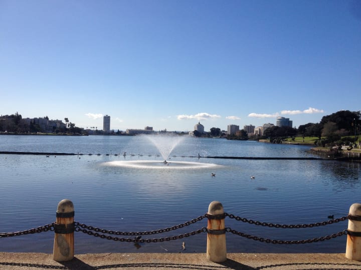 We'd intended to go food shopping the day we'd arrived, but after the flight cancellation, and not even arriving in San Francisco until sunset, we'd crashed out soon after we arrived. So instead, we headed out the next morning to find the Walgreens and Trader Joe's. We had decided that getting clipper cards for public transport would be significantly cheaper, the discounts worth the $3 for the card. We had our first ice cream of the holiday and ended up walking all the way around Lake Merritt. The skies blue, I was grateful I'd packed my sunglasses and sun cream.