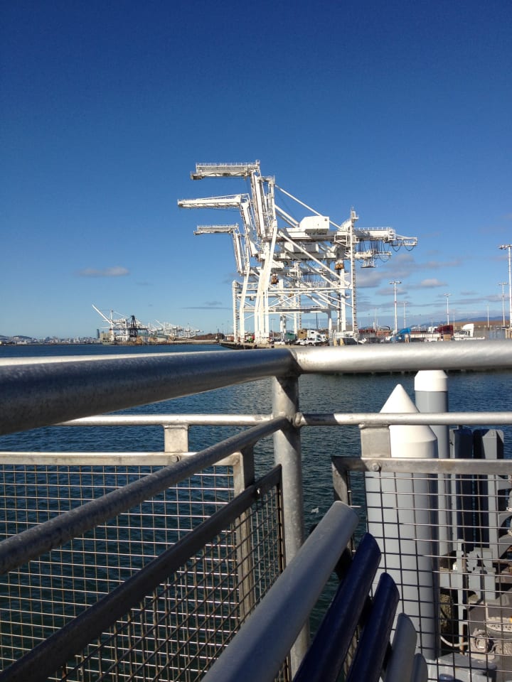 Enjoying the views, I walked over to the ferry, and used my clipper card to get the bay ferry across to San Francisco's Pier 41. On the way, it passed the iconic cranes of the port of Oakland, and stopped at Alameda, and the ferry building in San Francisco. Sat upstairs on the outer deck, it was very windy. The ferry goes under the Bay Bridge, and gives great views across to Alcatraz.