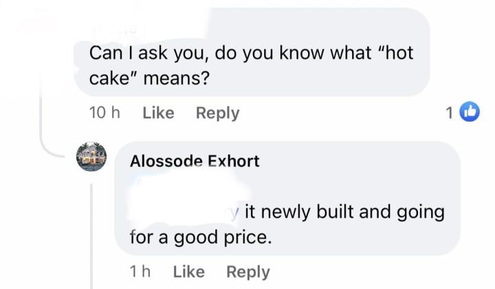 What does cake & hot have to do with a building? I will never know and at this point I don't want to try to figure out the mindset of the Ghanaian.