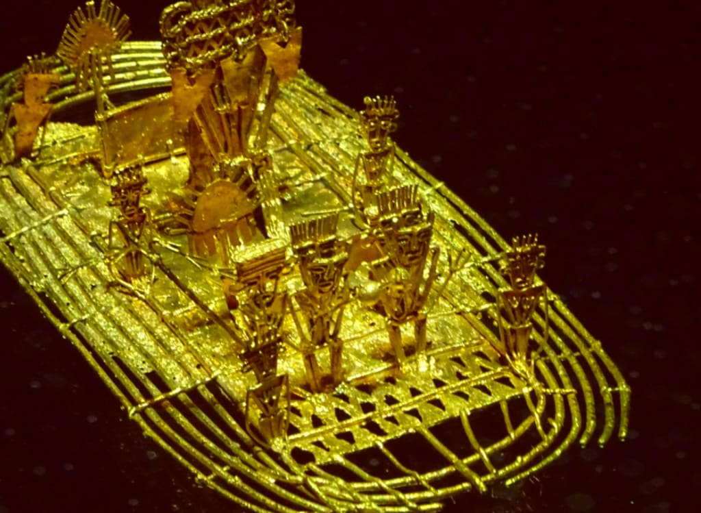 Many moons ago in the region known as Guatavita lived a wealthy tribe, part of the Muisca people. The tribe's chief or Cacique would take the name Guatavita for himself as representative of his people. The Muisca people were highly skilled at mining and crafting gold. Gold was not currency; it had a much more critical role. Because it shined brightly in the same warm tones as the sunlight, it was assumed to be the reminder left by the sun god Suá (or Zhuá) for mortals to offer as a tribute. Humanity's responsibility was to dig the gold, shape it into beautiful objects representing the many deities, or into elaborated golden plates and jewelry to adorn the people's bodies to show that they were proud children of the Sun. Once a year, the tribe would take every single golden piece they had accumulated and bring it to the edge of the Guatavita Lagoon. There, a raft awaited, the priests of the tribe collecting the people's treasures. The Cacique then appeared, naked but painted in golden dust. He would get on the raft and be taken to the middle of the Lagoon. As they sailed, the priests threw the treasures into the lake. Finally, the Cacique would submerge his golden body in the water. The Lagoon body was the body of the goddess Chie, the deity of the moon and the waters. She was the Sun's wife and, as such, would receive the tributes in his name.