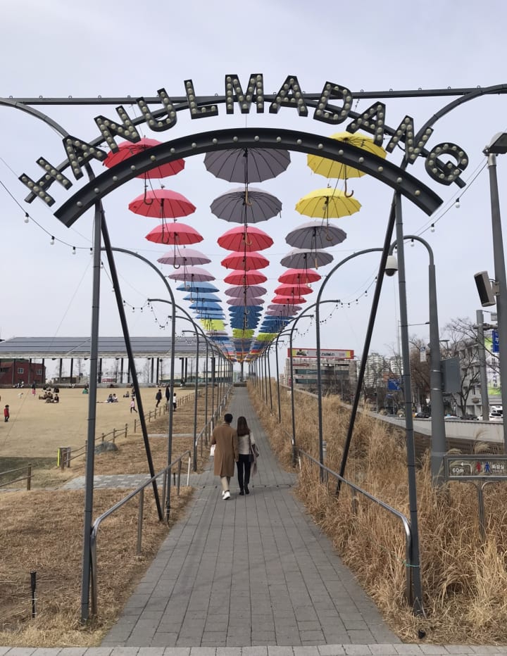 Swing back to the ACC to bring your day to a close. Hanulmadang, located near the main ACC promenade, is a large grassy space with an iconic art installation of hanging umbrellas. Perfect for pictures and made for picnics, this space is best enjoyed in the evening with Korean fried chicken and beer, with street performers and the Gwangju skyline adding to the serene ambiance.