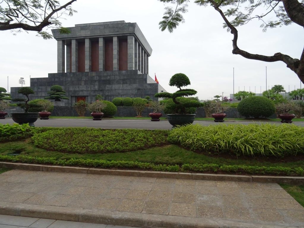 We again had to wait just around the corner from the Mausoleum, before being promptly marched along a red carpet past a group of schoolchildren, through a welcoming committee of white uniformed guards and up into the Mausoleum. We were briskly marched through a continuing red carpet, up a flight of stairs and swiftly into a dark chamber that housed the body of Ho Chi Minh, sitting in a glass cabinet in the middle of the room. We briskly walked around the glass cabinet, giving us a near-360 degree view of Ho Chi Minh himself before exiting the chamber - with photos absolutely strictly not allowed. It was a very brief experience and one that was fairly surreal, looking at a very lifelike dead body of a revered Vietnamese figure, but I'd certainly recommend visiting it.