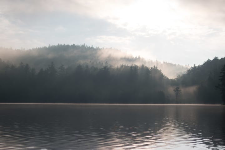Now, as I look out over the mountains, the delicate blue silhouettes in the distance beneath the blinding sunshine, I feel an expectation of bliss. Maybe it will come. Or maybe, home will always be the fog rising up from the sparkling surface of the lake, as the sun rises from behind the trees.