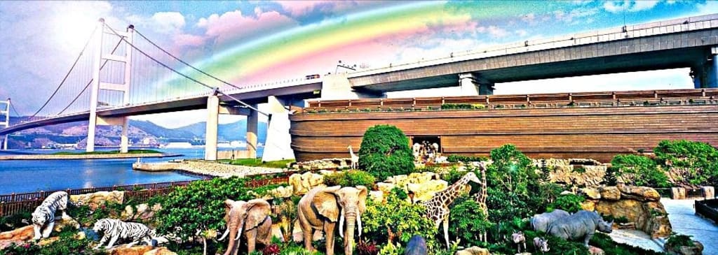 The entrance to Noah's Ark in Hong Kong, an attractive natural area, is located at the end of the Tsing Ma Bridge. It is believed that this bridge is one of the largest suspension bridges in the world that connects the small island of Ma Wan with other development cities. Ma Wan is indeed the closest fishing village. I couldn't believe that my eyes specifically saw superiority and resemblance to Noah's ship, as explained in the Bible. There, I felt that the ark was moving, but that was probably my imagination. When we walked a little further, we found a beautiful ventilable room full of modern technology. There is also an exceptionally built amphitheater for film lovers. Coincidentally, the screen was showing a film about the Great Flood—when we entered.
