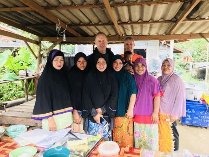 Along the ride, we had to stop for a break and found this family who was doing rubber farming.