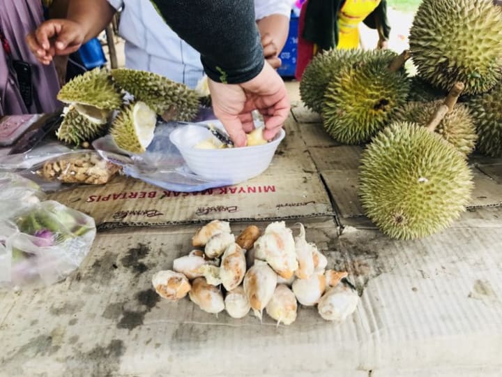 We stop for a break and had Durian fruit and pineapple.