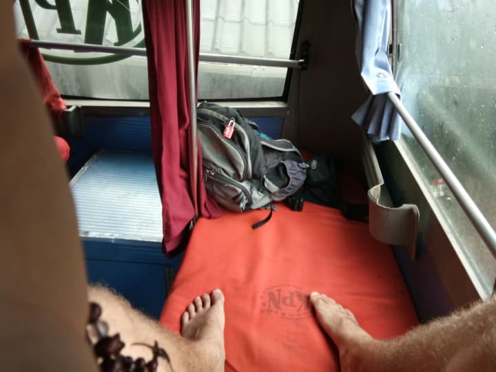 As I go outside to await the arrival of my sleeper bus, I am approached by an Indian man asking for a cigarette. I handed him one from my pack and we talked a little as he had great English skills. Jerin was aged 24 and heading to Bangalore to continue his job as a physiotherapist after spending a week at home seeing his family. At that moment our bus arrived and we climbed aboard.