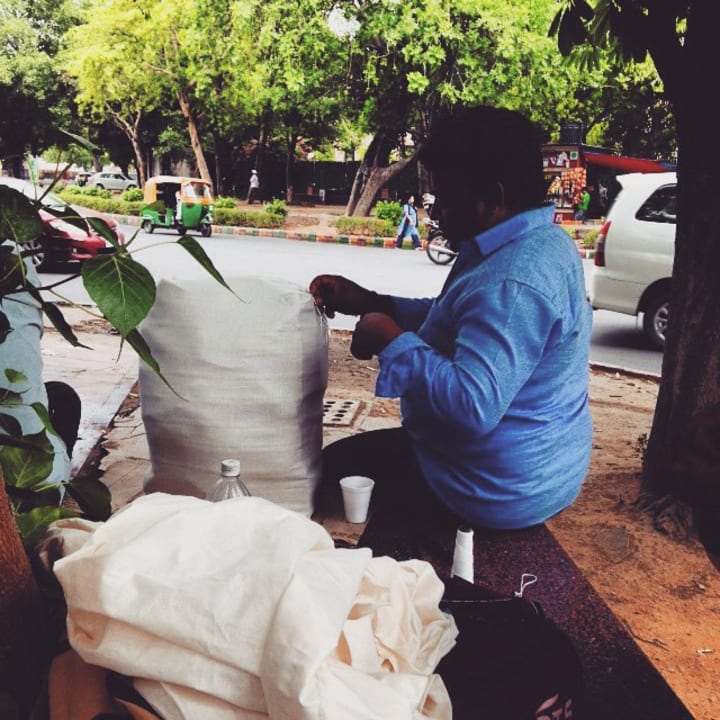 Step 1: find the man on the corner of a New Delhi street, somewhere in the vicinity of the post office. There are no signs, but he will have his needle and thread.