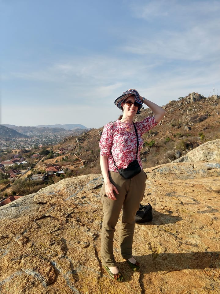 So when I saw Grandma’s old Singer back at my brother’s, I asked to move it up to the garret room where they’d put me for this stay. Pulling out my Lagos fabric, I sewed an apron for the kind hosts in Pretoria. Then I made a robe and long-sleeved shirt for myself. (Since my brother had let me store a few things at his house while I traveled, I had room for these new travels.) By the time I returned to the road in early January, I felt a bit more myself again.