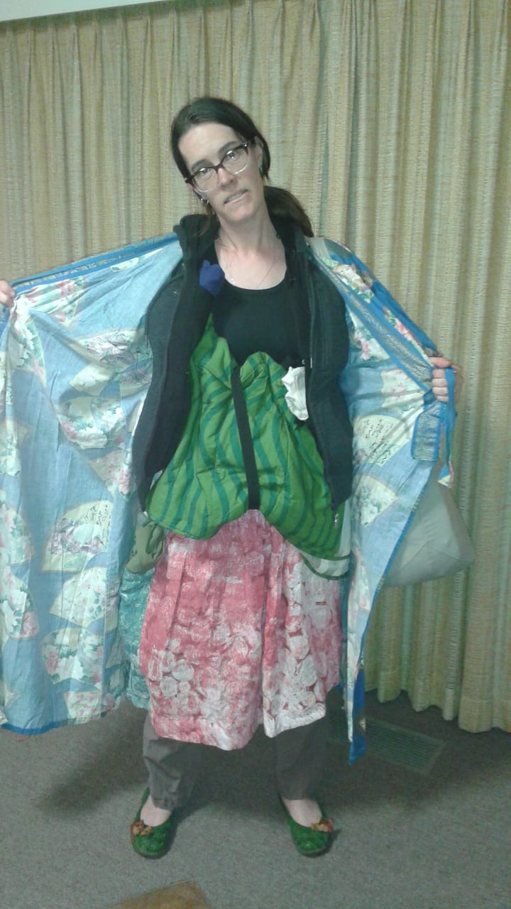 When a friend picked me up for my drive to the airport the next day, I thrust my arms into the sleeveless coat and strapped on all of my luggage.
