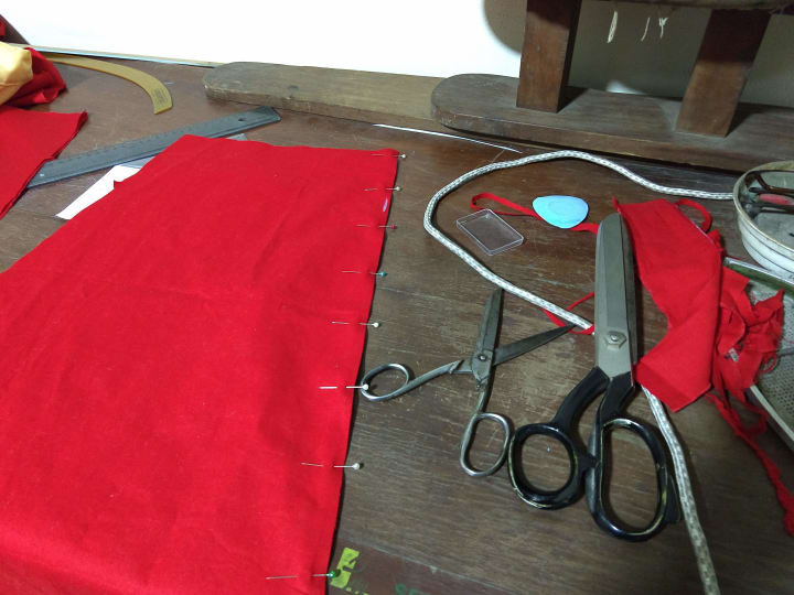 In the end, the tailor didn’t seem to like me using his machines, so we worked out a system: I cut out the fabric he sewed together, and I helped thread his needles and press the seams.