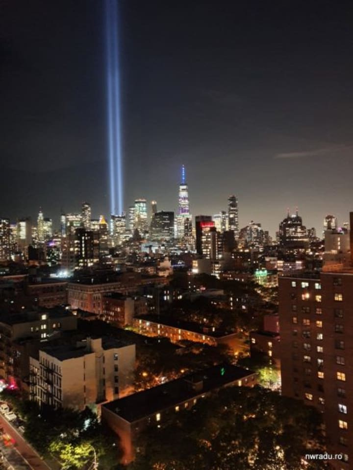 The first is a very large one for an underground, where you feel like in a salt mine. There are large descending ramps, and from time to time you see various objects left over from then. Of interest is "the sluice wall", ie an underground dike built with the twin towers. The buildings were close to the water of the Hudson River, and this wall that descended deep into the ground served as a dam to stop water from seeping into their basement. It's all that's left of the two towers.There are others to see in that area. You can see metal beams in the structure of the building, contorted after fire and collapse. There are pieces of them embedded in the old foundation of the buildings, now of the museum, broken to collapse. A cross made for FDNY (fire department, their firefighters) since those days by passers-by and volunteers. An elevator motor and even a concrete staircase inside the building, which survived the collapse (staircase B in the north tower, where 14 survivors protected by the resistance structure were found).The second, in the evening, when in the World Trade Center area, the two powerful installations that illuminate the sky annually on September 11 were lit again. They are called Tribute in Light and are two batteries of 44 xenon reflectors, each of 7,000 watts, which light up in the evening and last until late at night.