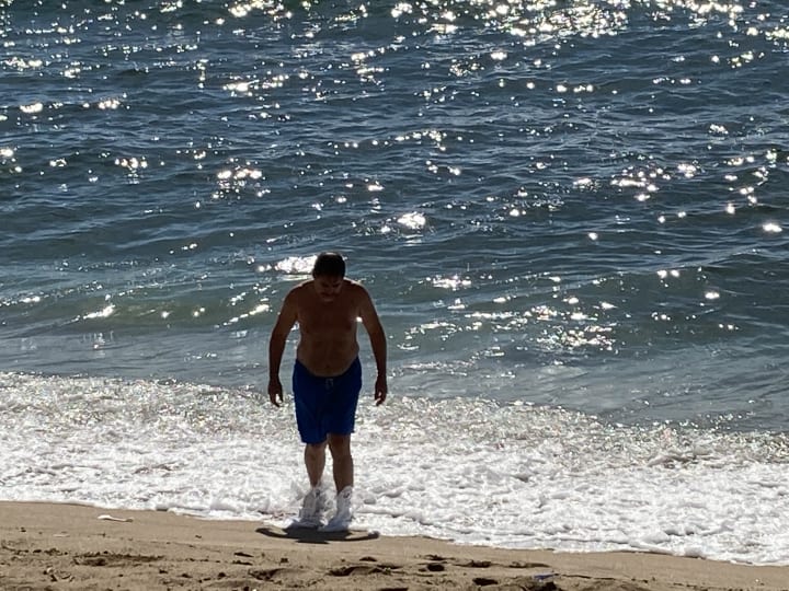 When we arrived at the coast the beach was not really a beach, it was more of a coastline. There wasn’t much sand but we found a way onto the beach and I quickly stripped off my clothing and raced into the ocean.