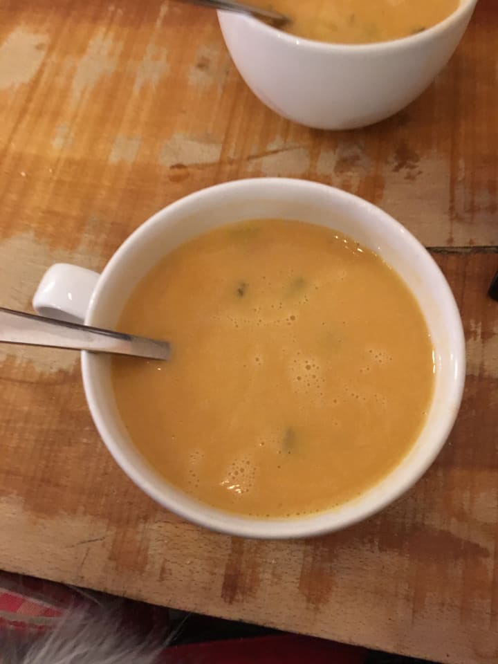 The next time I ate out, I also had soup. This time it was lobster soup that a friend of a friend recommend. Sægreifinn near the harbour. The tiny restaurant claims to have the best lobster soup in the world, and I think I will have to take their word for it. It was 1490 IKR which is around £15 in English money. I remember in Italy and France lobster being twice as much. Normally vegetarian options cost less than their meaty counterparts but I remember the soup I had at Geysir was at least 1600 IKR and that was a vegan soup.