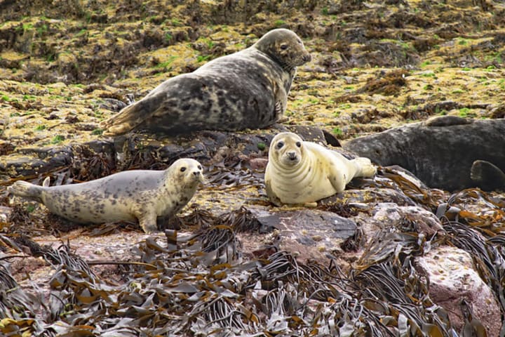 We next move down to the Farne Islands, where we can view the famous Farne Island seals. The Farne Islands are home to thousands of grey seals (also known as Atlantic seals), and each autumn hundreds of pups are born here.