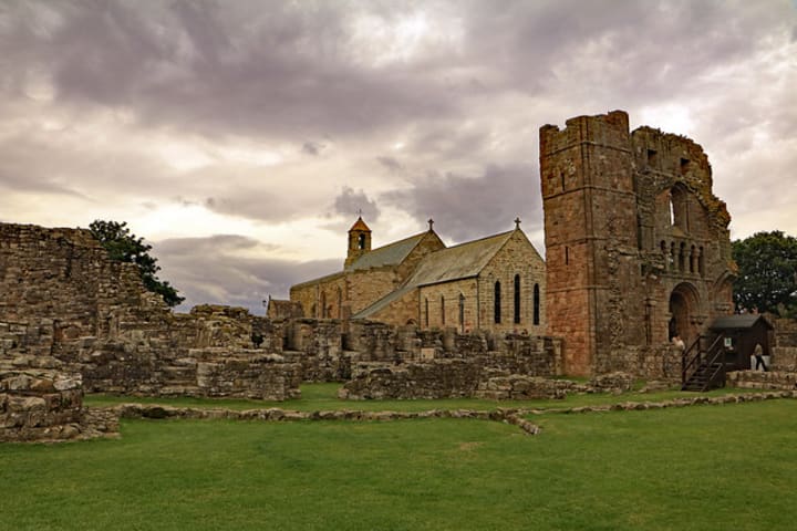 Possibly the holiest site of Anglo-Saxon England, Lindisfarne was founded by St. Aidan, an Irish monk, who came from Iona, the centre of Christianity in Scotland. St Aidan converted Northumbria to Christianity at the invitation of its king, Oswald. St. Aidan founded Lindisfarne Monastery on Holy Island in 635, becoming its first Abbot and Bishop. Here we have the Church of Saint Mary the Virgin, with part of the Lindisfarne Priory in front of it.