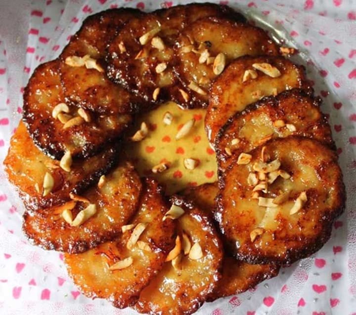 Pua - Pua is a sweet dish made with rice flour, milk, jaggery, and cardamom. The mixture is deep-fried until crispy and served with chutney.