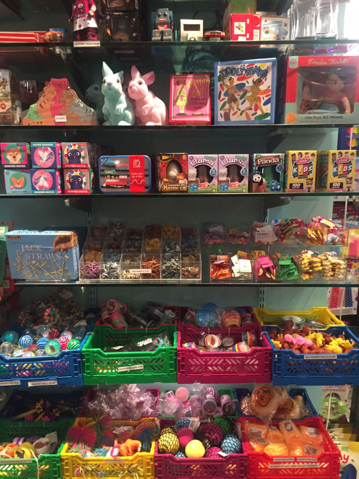 There is a small free-wrapping station right next to the door, and across from the counter, you'll see the shelf full of brilliant New Zealand souvenirs such as mugs, magnets, or bottle openers. You know what I mean. Also, if you're looking for a gift for kids or an adult who likes to have fun as much as the little ones do, you found the right place. Watch out not to lose track of time in here!