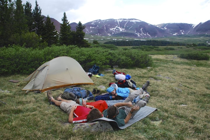 1. Once you find your campsite, set it up quickly and lay down for a bit. Your body will hurt so laying down will help a bit.