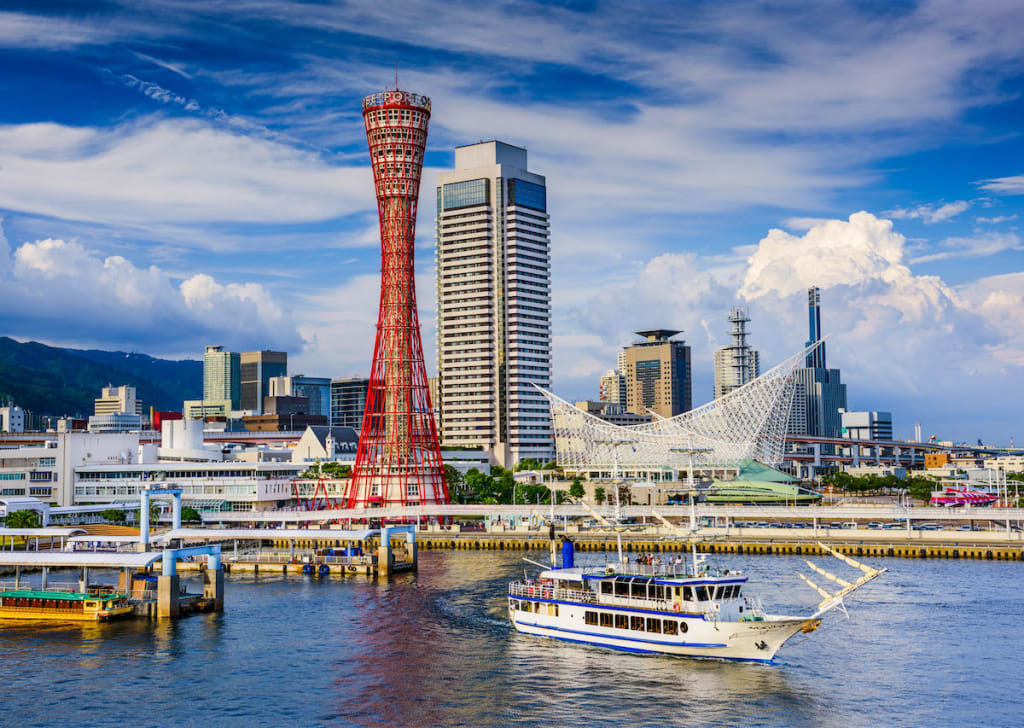 Kobe is located in central Japan on Osaka Bay. The city is known for its signature marbled beef and scenic mountain setting framing the harbor. A great way to see the city is from the top of Mount Rokko, offering panoramic views.