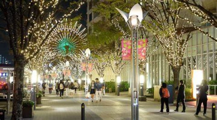 Mosaic stretches along the waterfront offering a wide selection of restaurants with harbor views. It is particularly nice at night when all lit up. At the southern end, there’s a Ferris Wheel and the Anpanman Museum, dedicated to the popular manga and anime series. The South Mall and North Mall are enclosed shopping malls.